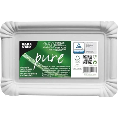 PAPSTAR Pure 11062 250 Cardboard Tray 13 x 20 cm Rectangular White