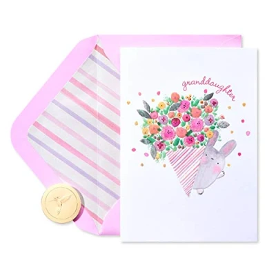 Front Message: Granddaughter Inside Message: Happy Birthday wishes filled with love and pride to a kind, lovely, and truly wonderful granddaughter Papyrus birthday cards offer premium style, unique embellishments and uplifting wishes for anyone! Card measures 7 in. x 5 in. Envelopes and unique Papyrus gold seals included. Papyrus offers premium stationery, greetings cards, gift wrap, gift bags and entertaining products for everyday occasions and all holiday seasons--all with unique designs and quality embellishments