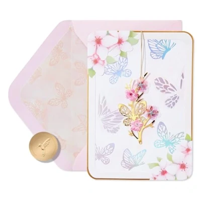 Front Message: Blank Inside Message: Warmest birthday wishes to you Celebrate someone's special day with this handmade Papyrus birthday card that features shimmering foils, gems, beads, sequins, and soft fabric with a removable hangable decoration Card measures 5 in. x 7 in. Envelope and unique Papyrus gold seal included. Papyrus offers premium stationery, greetings cards, gift wrap, gift bags and entertaining products for everyday occasions and all holiday seasons--all with unique designs and quality embellishments!
