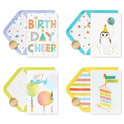 Papyrus Boxed Birthday Card Assortment, Bright (4 Count)