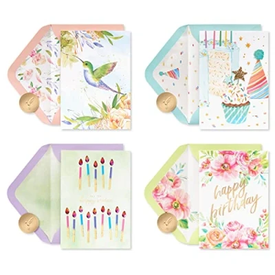 Papyrus Boxed Birthday Card Assortment, Floral and Candles (4 Count)