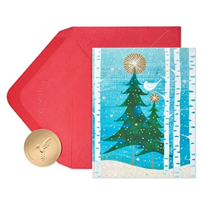 Front Message: Blank Inside Message: May peace and happiness be yours this Christmas and throughout the New Year Papyrus boxed Christmas greeting card set includes 20 cards, 20 red envelopes and 20 gold seals. Boxed in protective plastic lid. Cards measure 3.75 in. x 4.75 in. Standard postage required. This premium set of Papyrus holiday boxed stationery cards features glitter. Perfect for sending Christmas cards to friends, family or anyone this holiday season. Papyrus offers premium stationery, greetings cards, gift wrap, gift bags and entertaining products for everyday occasions and all holiday seasons-all with unique designs and quality embellishments.