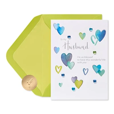 Front Message: For my Husband Inside Message: I’m so blessed to have this wonderful life with you This premium Father's Day card for Husband features a sweet design embellished with shimmering foil and gems Bright green envelope and unique Papyrus gold seal included. Card measure 5.75 in. x 5.75 in. Extra postage required Papyrus offers premium stationery, greetings cards, gift wrap, gift bags and entertaining products for everyday occasions and all holiday seasons--all with unique designs and quality embellishments!