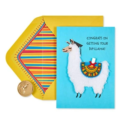 Front Message: Congrats on getting your dip-llama! Inside Message: Happy happy Graduation! Celebrate the graduate and wish them the best with an elegant graduation card they're sure to appreciate. Papyrus offers premium stationery, greetings cards, gift wrap, gift bags and entertaining products for everyday occasions and all holiday seasons-all with unique designs and quality embellishments. Envelope included and extra postage may be required