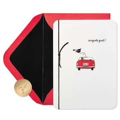 Front Message: Congrats, Grad Inside Message: Here’s to you and your wonderful, exciting journey ahead This graduation card by Papyrus features shimmering foil, tassel and decorative attachments. Red envelope with unique Papyrus gold seal included. Card measures 3.875 in. x 7.875 in. Extra postage required Papyrus offers premium stationery, greetings cards, gift wrap, gift bags and entertaining products for everyday occasions and all holiday seasons--all with unique designs and quality embellishments.
