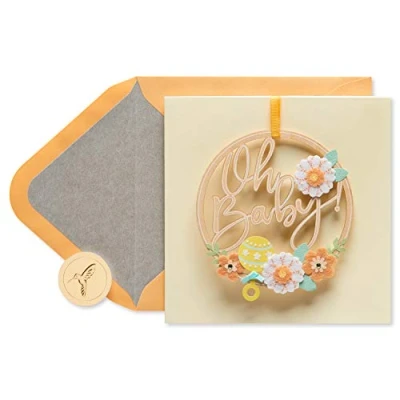 Front Message: Oh Baby! Inside Message: A sweet welcome to your new little one Papyrus baby arrival cards and baby shower cards offer premium style and are perfect for new mom-to-be, parentss-to-be, dad-to-be, close friend, co-worker, neighbor, daughter, son and more! Card measures 5.75 in. x 5.75 in. Envelopes and unique Papyrus gold seals included. Papyrus offers premium stationery, greetings cards, gift wrap, gift bags and entertaining products for everyday occasions and all holiday seasons-all with unique designs and quality embellishments