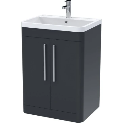 Parade Floor Standing 2 Door Vanity Unit with Polymarble Basin 600mm Wide Satin Anthracite Nuie