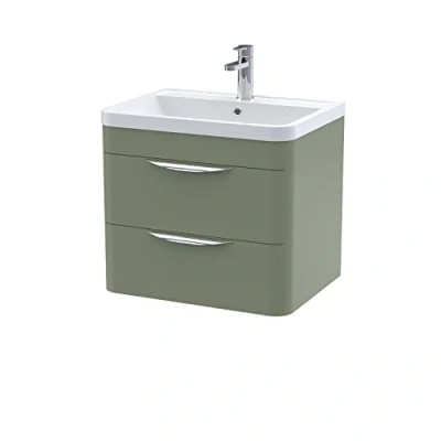 Parade Wall Hung 2 Drawer Vanity Unit with Ceramic Basin 600mm Wide Satin Green Nuie