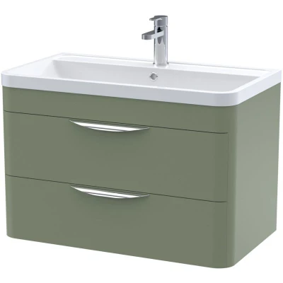 Parade Wall Hung 2 Drawer Vanity Unit with Ceramic Basin 800mm Wide Satin Green Nuie