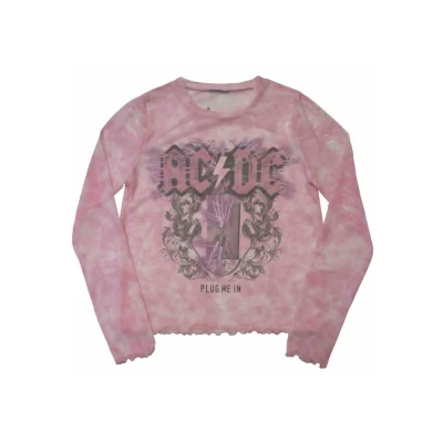 Paradiso Clothing AC/DC PLUG ME IN Long Sleeve sleeved top, Women's, Size: XL, Pink