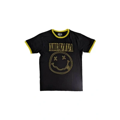 Paradiso Clothing Nirvana Outline Grunge FACE Ringer Print Tshirt, Women's, Size: Small, Black