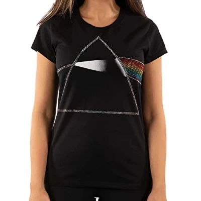 Paradiso Clothing PINK Floyd DARK SIDE OF THE MOON Diamante Print Tshirt, Women's, Size: Large, Black
