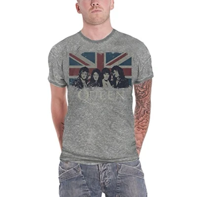 Paradiso Clothing Queen Vintage Union JACK Burnout Print Tshirt, Size: Medium, Grey