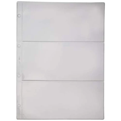 10 x Clear plastic storage sleeves for collecting various items. Dimensions: 238 x 315 mm. With 3 storage slots in each sleeve.