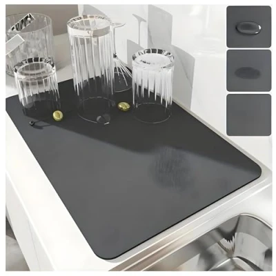 Dimensions: 30 x 40 cm, offers a large enough surface for drying various dishes. Non-slip surface underneath: ensures optimal adhesion to smooth surfaces, ensuring the stability of the mat when drying. ABSORBENT SURFACE The top of the mat is designed to absorb water effectively and speed up the drying process of dishes. HIGH QUALITY MATERIAL Made from high quality materials, this mat is durable and resistant to daily wear and tear. ELEGANT DESIGN Its sober and elegant design fits perfectly into any type of kitchen decor. SPACE SAVING Replaces bulky dish towels and provides a compact solution for drying dishes. CONVENIENT & VERSATILE Suitable for drying a variety of dishes such as plates, glasses, cutlery and more. Easy care: Easily hand washable for easy cleaning and long-term use. Reduces the risk of damage: protects your kitchen surfaces from scratches and stains while preventing the formation of puddles., Weight: 0.4629707502 Pounds, Manufacturer: parence