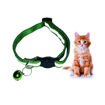 PARENCE Cat and Dog Collar with Reflective Band Bell Quick Release System Strip for the Safety of Your Pets Adjustable Size (Dark Green)
