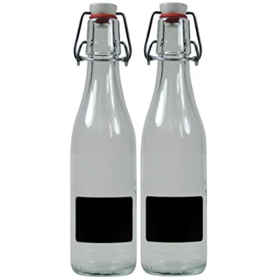 Robuste Small swing top bottle stoppers. For use as bottle, juice bottle, oil bottle, liquor bottle Spirit Bottle, milk bottle, water bottle and for other drinks and liquids. Beautiful bottles to fill, for water, juice, liqueurs, Schnapps, vinegar, ö them by yourself, other message - can also be used as a gift boxed manufactured for lovingly selbst, e.g. for party favours Capacity: 0.33 Litres (to the very top), Approximate Dimensions: Height: 23 cm/Base diameter: 6.1 cm/Diameter Black 1.7 cm Box contents: 2 x Glass Bottle 330ml Capacity, 2 frame clasps in a Tafel look (the bottles made of porcelain and 2DEKORATIVEN labels will be delivered Unbeklebt) The bottle is Spuelmaschinenfest, but please take out the Buegel closure beforehand, because the don't like the tea Spueler:-))