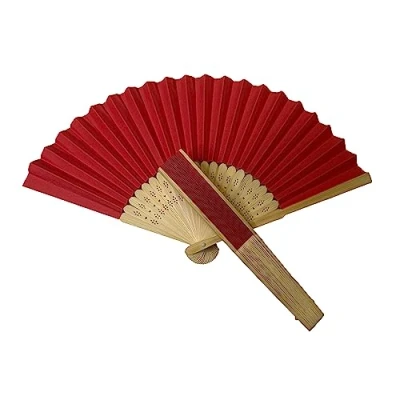Red Paper Foldable Hand Held Bamboo Wooden Fan by Parev. With 23 Pieces of Bamboo Ribs. Size open: 21cm x 37cm approx. Great for decorations, weddings and summer events to keep cool. Perfect for indoor and outdoor events. The fans are easy to use and can be opened and closed with a simple flick of the wrist. The bamboo handle is lightweight and comfortable to hold, making it easy to carry with you wherever you go. Available in a wide range of colours from the Parev range.