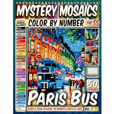 Paris Bus Mystery Mosaic Color by Number: 50 Enchanting Scenes Exploring the Romantic Streets of in Pixel Art