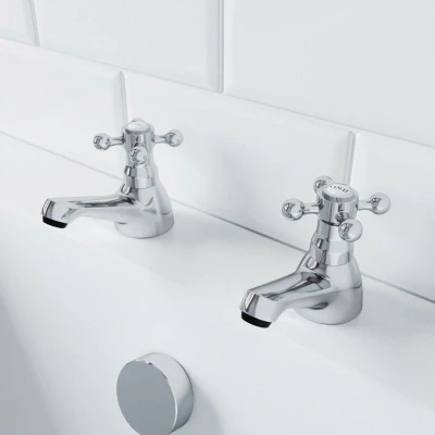 ManoManoGeneral description Pillars taps are an excellent choice for updating your bath with two tap holes without the need for costly renovations. These stunning taps feature separate valves to control the flow of water, allowing you to achieve a timeless look in your bathroom. With their traditional styling, they can easily replace outdated designs and enhance the overall aesthetic of your space. Technical specifications Tap Type: Bath Pillar Taps Use: Bath Style: Traditional Colour: Chrome Tap Control: Cross Head Spout: Fixed Tap Holes Required: 2 Fitting: Deck Mounted Pressure Suitability: Medium (0.5 - 0.9 bar) Inlet Connection Size: G3/4 Weight: 0.9 KG Flow Rates: 0.5 bar: 10.3 l/min, 1 bar: 13.9 l/min, 3 bar: 23.7 l/min Installation These taps are designed for easy installation on baths with two tap holes, fitting securely with a deck-mounted configuration. Usage The taps feature a reliable ceramic cartridge that ensures long-lasting performance and a smooth quarter-turn action for