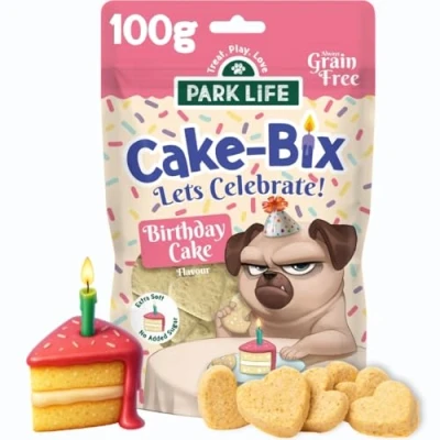 Celebrate your pup's birthday or Gotcha Day in style with Cake-Bix yummy soft baked cookies Cake-Bix are complementary pet treats for Adult Dogs, and are not intended as a meal replacement. Always have drinking water available Grain free, 100% natural, human quality, gut friendly, natural source of proteing, oven-baked in small batches, no added sugar or salt, meat free, puppy friendly All PARK LiFE biscuits are made to the highest standards using just a few simple ingredients, meaning they're so wholesome, even humans can munch them! As seen on Dragon's Den