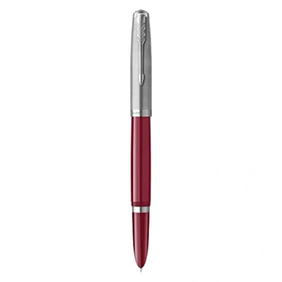 BrepenThe Parker 51 is a modern version of the original icon once considered the 'most sought-after' in the world, first launched in 1941. Durable glossy burgundy resin grip, a stainless steel cap with palladium finished details and the signature Parker arrow clip. Fountain pen with a unique covered nib with stainless steel for a writing experience that is both reliable and personal. A striking streamlined shape with a seamless transition from grip to nib, draws on Parker's expertise in superior craftsmanship.