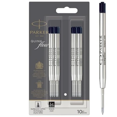 Authentic Parker ink refills designed for Parker ballpoint pens Parker QUINKflow ink offers consistently smooth writing on paper Beautifully pigmented deep black ink captures your thoughts Medium tip for everyday writing All Parker ballpoint pen refills are certified ISO 12757.2 and comply with Documentary Use standards for the handling and storage of documents during long periods of time