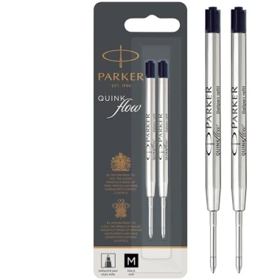 Authentic Parker ink refills designed for Parker ballpoint pens PARKER QUINKflow ink offers consistently smooth writing on paper Beautifully pigmented ink captures your thoughts Medium tip for everyday writing All PARKER ballpoint refills are certified ISO 12757.2 and comply with Documentary Use standards for the handling and storage of documents during long periods of time.