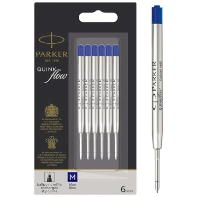 Authentic PARKER ink refills designed for PARKER ballpoint pens PARKER QUINKflow ink offers consistently smooth writing on paper Beautifully pigmented ink captures your thoughts in vivid blue colour Medium tip for everyday writing All PARKER ballpoint pen refills are certified ISO 12757.2 and comply with Documentary Use standards for the handling and storage of documents during long periods of time