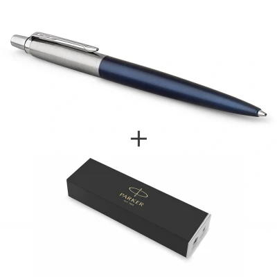 Parker Jotter Ballpoint Pen Royal Blue/Chrome Barrel Blue Ink Gift Box