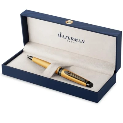 Trendy and contemporary metallic finish combined with a timeless, cigar-shaped silhouette Metallic gold lacquer for a modern and stylish finish, complemented by ruthenium plated trims and clip and a black PVD coated fountain pen nib Skilfully constructed ballpoint tip produces flawless lines that dry quickly, giving you free reign for spontaneous expression - anytime, anywhere Made in France, benefitting from Waterman’s in house craftsmanship and over 130 years of experience A timeless and elegant gift, your Waterman Expert Metallic ballpoint pen is presented in a premium Waterman giftbox with a Waterman ballpoint refill