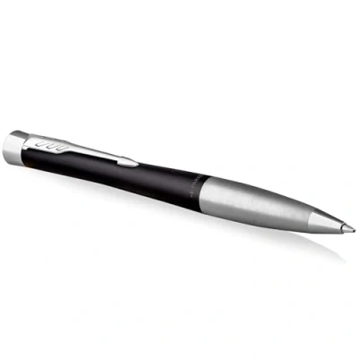 The Parker Urban Muted Black CT has stylish curves give the pen a bold, modern look that perfectly matches your personal style. The muted black powder colour is complemented by a chrome trim and top, and the signature arrow-shaped Parker clip. The biro's sophisticated twist mechanism combined with the reliable Quinkflow ink ensures smooth, consistent lines wherever you write. The Urban fountain pen has a durable engraved stainless steel nib ensures a reliable and personalised writing experience. The ergonomic shape adapts to your natural grip and provides the perfect weight and balance