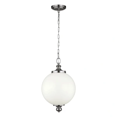 A period inspired large chain ceiling pendant featuring an over -sized white ball silhouette sure to make a dramatic statement. Finished in polished nickel. Also available in this range; Small Pendant and Flush Mount.