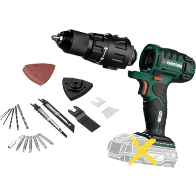 4-in-1: drill, multi-sander, sabre saw and multifunction tool Quick and easy to change attachments – no tools required Includes HSS plunge saw blade, scraper knife, delta sanding plate and 3 sanding sheets (1x P60, 1x P80, 1x P120) Includes metal saw blade and wood saw blade 19 torque settings and 1 drill setting, Weight: 10.0089866948 pounds, Manufacturer: Parkside.