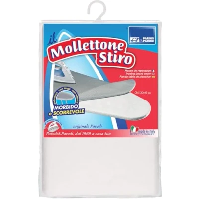 Molton ironing board cover Stiromega Dimensions: 130 x 45 cm Ironing Board Cover Universal for all ironing boards Ironing Board Molton Cover Universal excellent adhesion Fabric: 100% polyester. Italian product ideal for making it easier to iron.