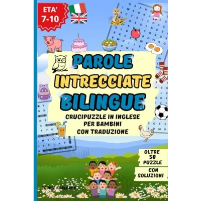 Parole Intrecciate Bilingue: 50 CruciPuzzle Tematici in Inglese per Bambini 7 8 9 10 anni.: Attività Educative Divertenti Scuola Primaria completa di Traduzioni e Soluzioni.