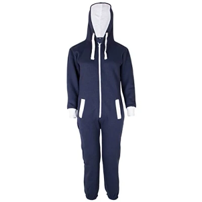 Parsa Fashions Malaika ® Childrens Unisex Kids Girls Boys Plain Colour Fleece Hooded All In One Onesie Jumpsuit 7 13 Years (Age 13, Navy)