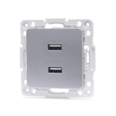 2 x USB socket capacity, designed for German and French type sockets. Its silver finish gives it an elegant and modern touch, ideal for any space. Add functionality to your spaces with the silver 2 USB socket, compatible with German and French electrical systems. Ideal for keeping your devices charged and ready to use. This dual piece features two built-in USB outlets, compatible with both German and French plugs. Its silver finish brings a touch of elegance and modernity to any space. Modernize your spaces with this handy piece of 2 USB outlets, ideal for connecting modern devices. Its silver finish brings an elegant touch, while its compatibility with German and French sockets makes it perfect for various environments., Manufacturer: Blendend
