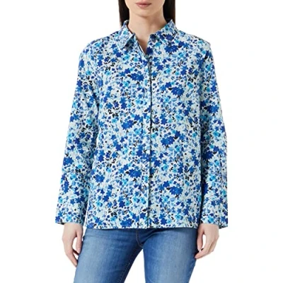 Part Two Women's Sabella Regular fit Long Sleeve Shirt, Blue Flower Print, 10