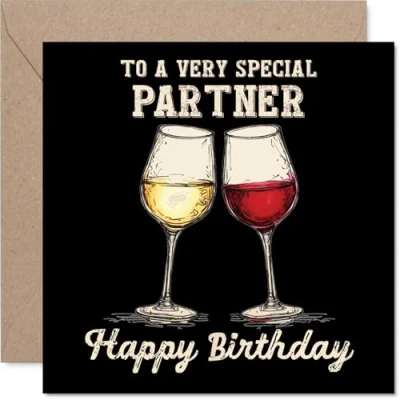 Partner Birthday Card Bday Wine Happy for from Boyfriend Girlfriend, 145mm Greeting Cards