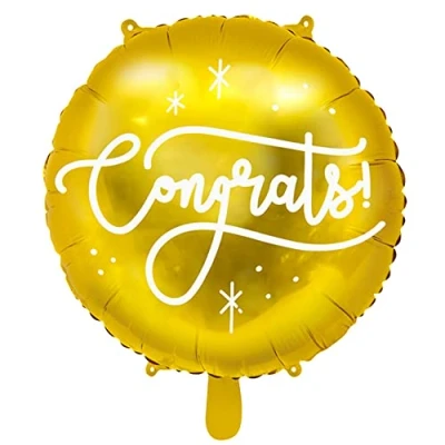 FOIL MYLAR GOLD balloon with writing CONGRATS congratulations 45 cm 45 cm gold, Manufacturer: PartyDeco