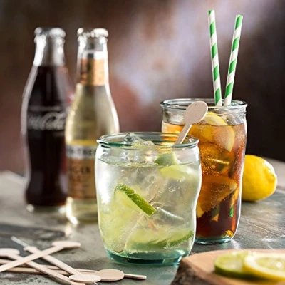 Tumbler glasses Material: 100% recycled glass Dishwasher safe Waved/rippled shape for greater grip and ergonomic design Ideal for serving juices, soft drinks, short cocktails and spirits