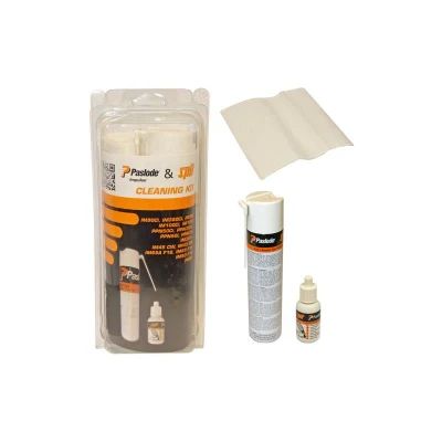 General description Paslode 013690 Cleaning Kit is designed for effective cleaning and maintenance of Paslode Impulse and Spit Pulsa tools. This kit includes a 300ml spray cleaner and a 15ml lubricating oil, ensuring your cordless nailer operates reliably and efficiently. Regular use of this cleaning kit will extend the life of parts and maximize nail driving power. Technical specifications Model: 115251 Pack Quantity: 1 Volume: 300ml (Cleaner), 15ml (Lubricating Oil) Dispensing Method: Aerosol Compatible With: IM90, IM360, IM100, PPN50, PPN35, IM350, IM45, IM65, IM50, P800 Usage Regular cleaning and lubrication with this kit will help maintain the performance of your nailer, ensuring it operates at peak efficiency. Other information This cleaning kit is safe for internal electronic components, cleans and dries quickly, and is plastic safe.