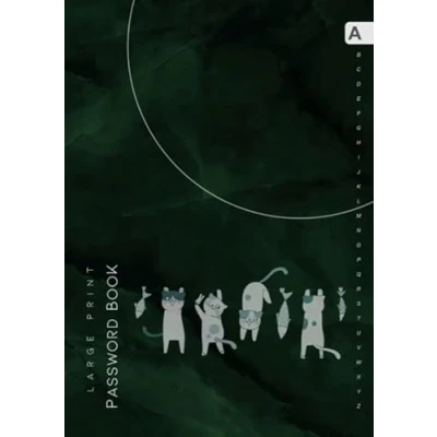 Password Book: A4 Large Print Notebook Organizer A Z Alphabetical Tabs Cute Funny Hanging Cat Design Marble Green Black