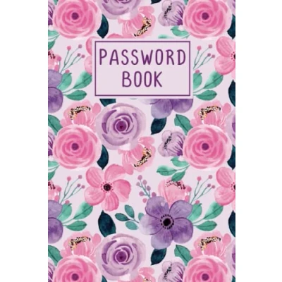 password book with Alphabetical tabs large print: keeper logbook alphabetized tabbed pages 6x9 rose pink flowers design website email ... log and internet organizer