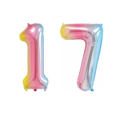Pastel Rainbow Number 17 Large Helium Foil Balloon Birthday Party Wedding Anniversary Decoration 101cm