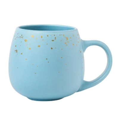 Pastel Speckled Ceramic Mug 400ml Matte Finish Coffee & Tea Cup with Gold Flecks, Curved Handle Gift for Home or Office (H 8.5cmx W 7cm) Assorted Colours (Matte Blue)