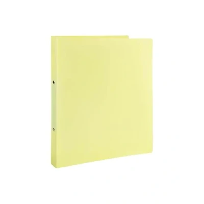 Pastel Yellow A4 Ring Binder. Introducing the Pastel Colour A4 Ring Binder, a stylish and functional addition to your organisational tools. This binder holds A4 paper, ensuring ample space for all your documents, notes, and projects. Equipped with 2 sturdy O-rings, it securely holds your papers in place. The 25mm spine provides a perfect balance of capacity and portability, allowing you to store multiple sheets without the bulk. Available in an array of soft, pastel shades, it adds a touch of elegance and calm to your workspace. The durable construction ensures long-lasting use, keeping your papers secure and neatly arranged. Ideal for students, professionals, and anyone who values both aesthetics and practicality in their office supplies.