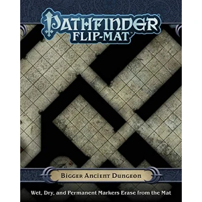 Some dungeons are older and greater than others! Each side of this Flip-Mat features a different massive ancient dungeon. One side features an enormous and ancient dungeon sprawl on the edge of a volcano, while the other is ancient mausoleum under a ruined city. Don't waste your time sketching when you could be playing. With Pathfinder Flip-Mat: Bigger Ancient Dungeon, you'll be ready next time your players want to delve deep into the ancient past, with all its dangers! Pathfinder Flip-Mat: Bigger Ancient Dungeon measures 27 by 39 inches, which gives you 45% more gaming space than the standard Pathfinder Flip-Mat. On tabletops across the world, the Flip-Mat Revolution is changing the way players run their fantasy roleplaying games! Why take the time to sketch out ugly scenery on a smudgy plastic mat when dynamic encounters and easy cleanup is just a Flip away?, Manufacturer: Paizo Inc.