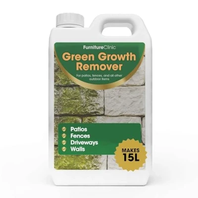 REMOVES GREEN STAINS: Our Green Growth Remover will get rid of green staining from all exterior surfaces. It also prevents regrowth. DILUTES INTO 15 LITRES: The 2.5 L bottle dilutes with water to make 15 litres of ready-to-use solution, enough to cover around 63 m². SPRAY AND LEAVE TO WORK: Once diluted, simply spray on, and walk away. The green stain will disappear within five days. No scrubbing or pressure washing required. USE ON MULTIPLE OUTDOOR SURFACES: Use our green stain remover to clean and restore the appearance of all hard surfaces including decking, fences, patios, paths, tarmac, roofs, walls, stone garden pots and ornaments, uPVC windows and greenhouses. BIODEGRADABLE: Algae remover is safe to use around children, pets and wildlife. The formula is water-based and contains no bleach or acid.